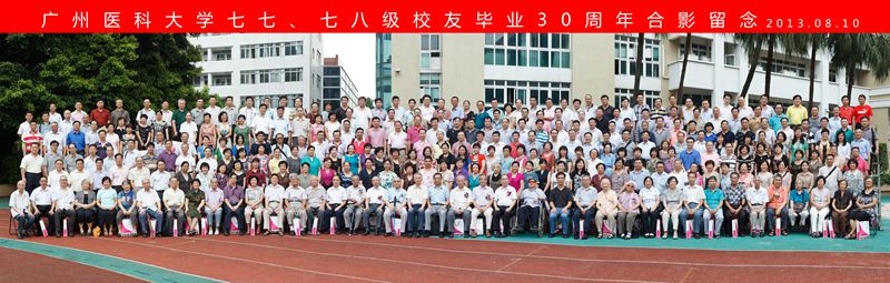 今年8月10日,在母校成功升级之际,迎来了我们七七、七八级毕业30周年的庆典活动。这是我们期盼已久的盛大节日,是继2003年毕业20周年庆典、2008年校庆50周年活动后两个年级校友团聚的第三次大型活动。本次活动的主题是:追忆难忘时光,共享成长经历,联谊师生情谊,畅谈美好前景。为办好本次活动,我们编印了《风雨后彩虹艳丽 三十年岁月如歌》的纪念册,钟南山院士和王新华校长均为我们题词。 当日,来自国内和美加、澳洲、欧洲的280多名校友及谢楠柱教授等80多名教师一早就聚集到了学校。校园内彩旗招展,处处是欢庆的广告、标语与音乐声,师生相聚,同学团圆,大家沉浸在喜庆之中。出席本次活动的嘉宾有钟南山院士、广州医科大学党委书记冉丕鑫教授,我们的老师原学院领导黄济群、蔡如森、刘义海、谭树芬以及学校统战部的领导,盛况空前。 上午10点半,在体育馆礼堂举行了主题是“相伴昔日,欢聚今朝”的庆典大会。在致开幕词后,七七级、七八级代表分别讲话,深深感谢母校及老师多年来对我们的教育和培养。五八级校友曾文俊教授代表教师发表了热情洋溢的讲话,朗诵诗歌,深情地唱起他创作的歌曲。学校冉书记对校友们的到来表示热烈的欢迎,指出七七、七八级校友有“三多”:一是在海外工作、生活及创业的多;二是在专业领域有理想、有成就的多;三是从事管理工作,做领导的多,做领导做得好的多。母校为你们感到骄傲和自豪,也希望你们继续关注母校的发展。 钟南山院士发表了重要讲话,对我们给予高度评价。他指出:没有一个年级的聚会有这么多老师参加,很重要的是来自你们的表现和凝聚力。首先,你们有更高的追求,有动力,这是非常宝贵的素质。七七、七八年级660人毕业,在国内的410人,占62%;从医的227人有高级职称,占55%,这在其他年级是绝无仅有的。他勉励我们:一个人一辈子永远有追求,这是最重要的;其次,要有信心,你们很多人是53岁,刚从青年到中年,正是时候;第三,要有健康。特别要注意锻炼,继续学术上的努力,要有健康支持。最后他提出,希望2023年能健康第参加你们的毕业40周年庆典。 校友代表宣读了《关于在新校区捐建永久建筑纪念物的倡议书》。会后,全体在校园合影留念。中午,在东方宾馆宴会厅举行了“畅叙友情,分享祝福”的师生团聚活动;下午,分年级举行班级交流团聚联谊活动。许多不能前来的老师及海外校友纷纷打来电话,积极支持我们的活动。 本次大会是一个真正团结的大会、温馨的大会,是传递正能量,共筑中国梦想的大会。我们衷心祝愿母校蒸蒸日上,愿我们的师生情、同学谊永存。来年再相会。