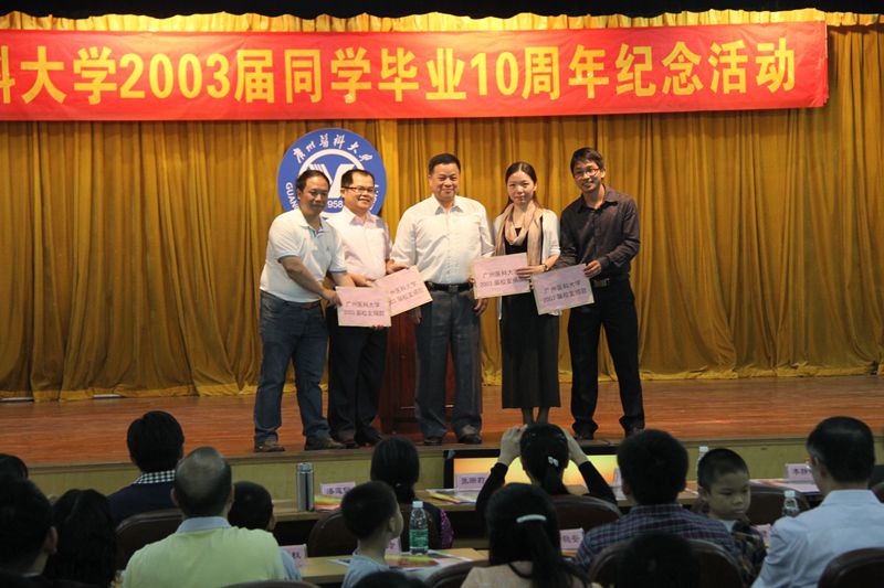 备注:2003届校友继续传承广医校友文化精神,本次聚会向“广州医科大学校友奖学、助学金”捐款人民币10000元。http://210.38.57.40/publish//publish/XmlFile/3233/W_10136_67336.html