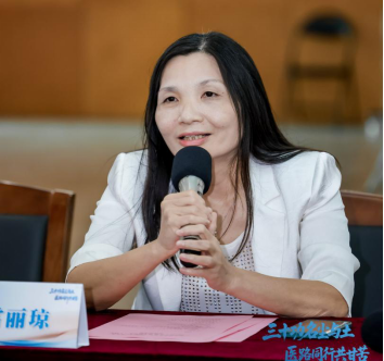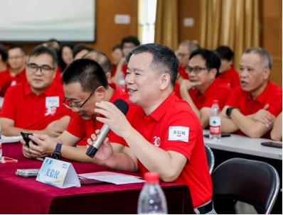 教师代表雷丽琼老师发言 汪志标理事长结合校友工作与基金会运行经验,介绍了南山教育发展基金会的设立背景与发展历程。他提到,基金会自2018年成立以来,累计接收捐赠超1600万元,资助学生1900余人次。他呼吁校友们继续关注母校,通过捐赠、设立基金等方式,支持学校人才培养与事业发展。