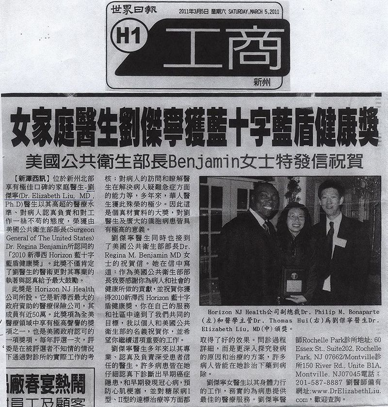 83级美国校友刘杰宁获蓝十字蓝盾健康奖